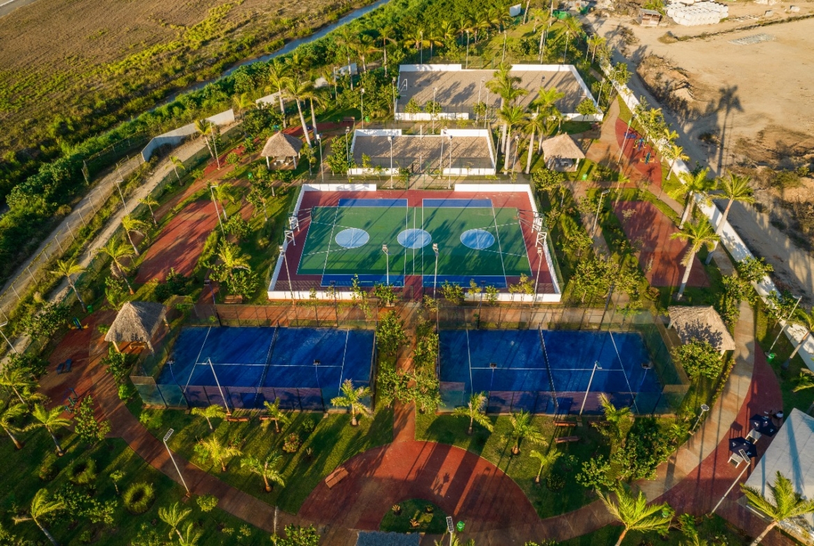 • Palapas, ciclopista y parque lineal con canchas deportivas.